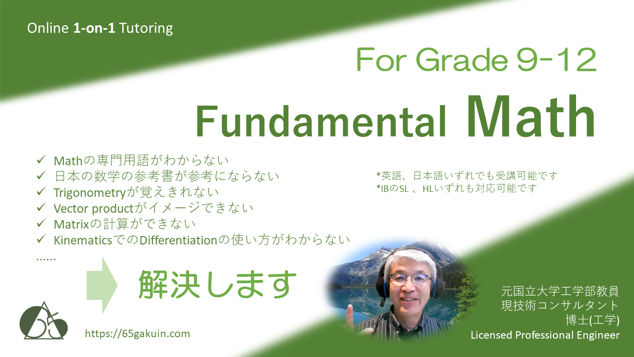 講師は帰国子女等の大学生アルバイトではありません。元大学工学部准教授、北米で技術コンサルタントとして多くの教育現場と実務現場を見てきた専任講師です。APやIBのMathは大学進学後の学習にもつながる大事な基礎科目であり、試験さえパスできればよいというものではありません。大学進学後や科学技術系の実務のことも視野に入れた指導をおこないます。