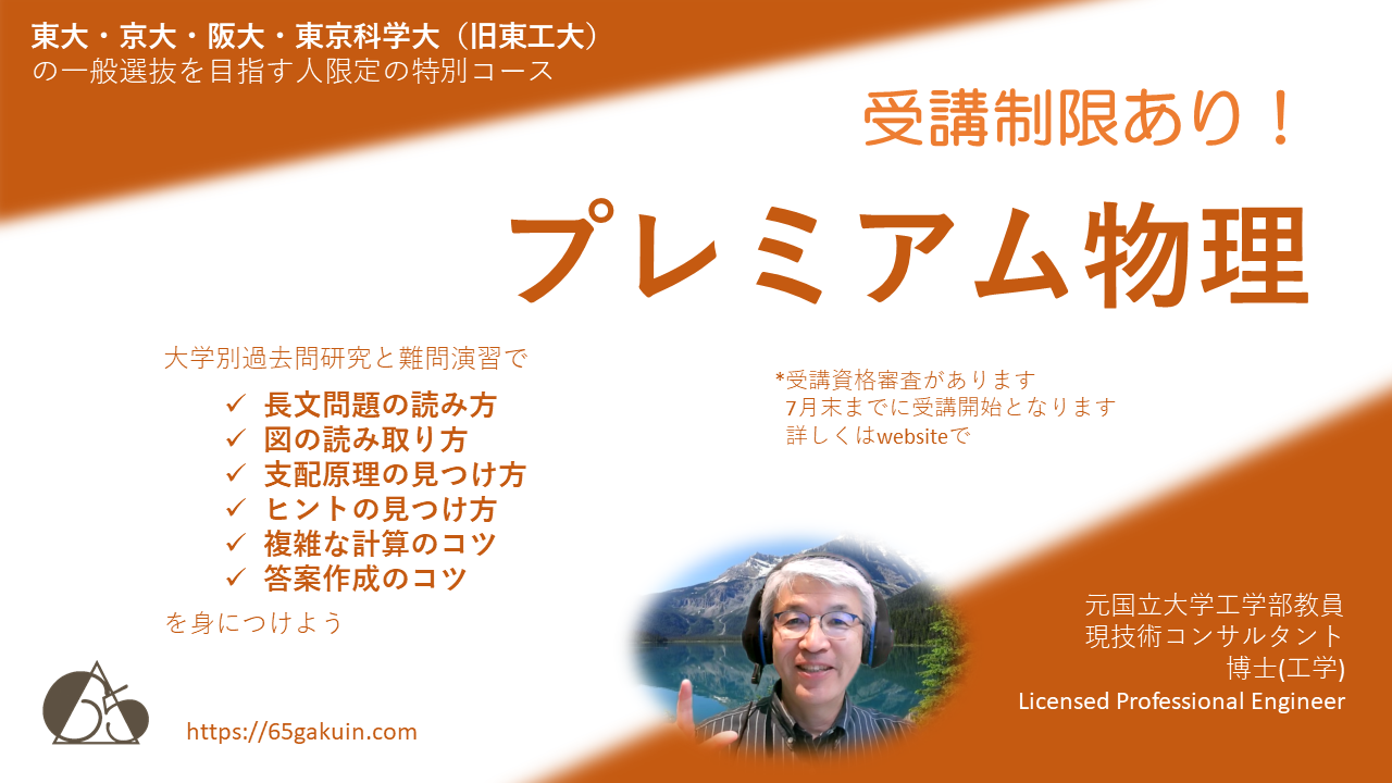 物理の難問は問題文が長く設問数が多いのが特徴です。そして一つの大問に複数の分野が混じっています。単元ごとの問題演習ではこのような総合系問題はカバーできません。この講座では難問の読み解き方、ヒントの見つけ方、論理の組み立て方、合格答案の書き方などの指導をします。